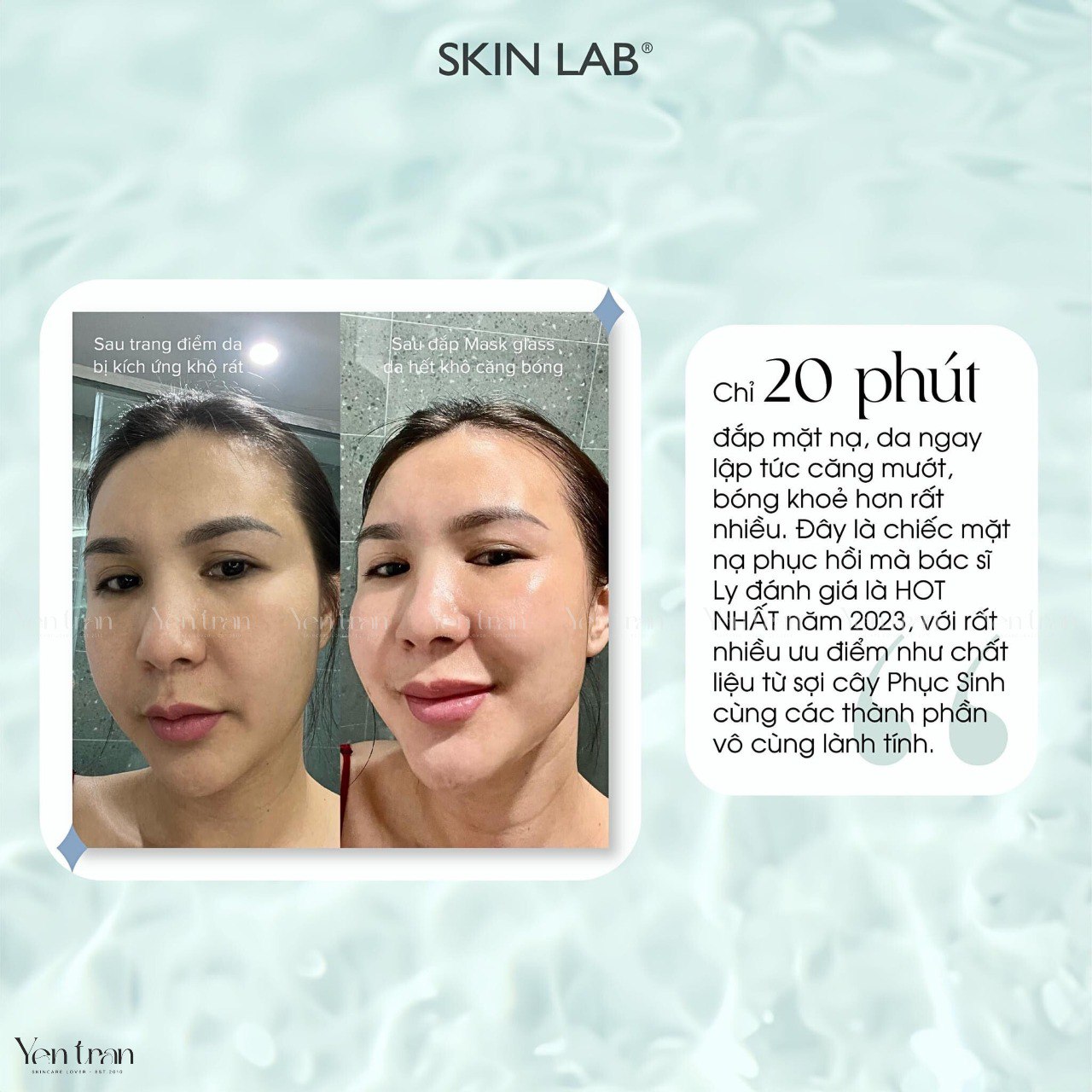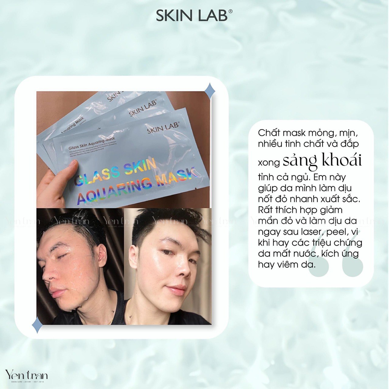 Mask Skin Lab giúp da mình làm dịu nốt đỏ nhanh xuất sắc. Rất thích hợp giảm mẩn đỏ và làm dịu da ngay sau laser, peel, hay các triệu chứng da mất nước, kích ứng hay viêm da.